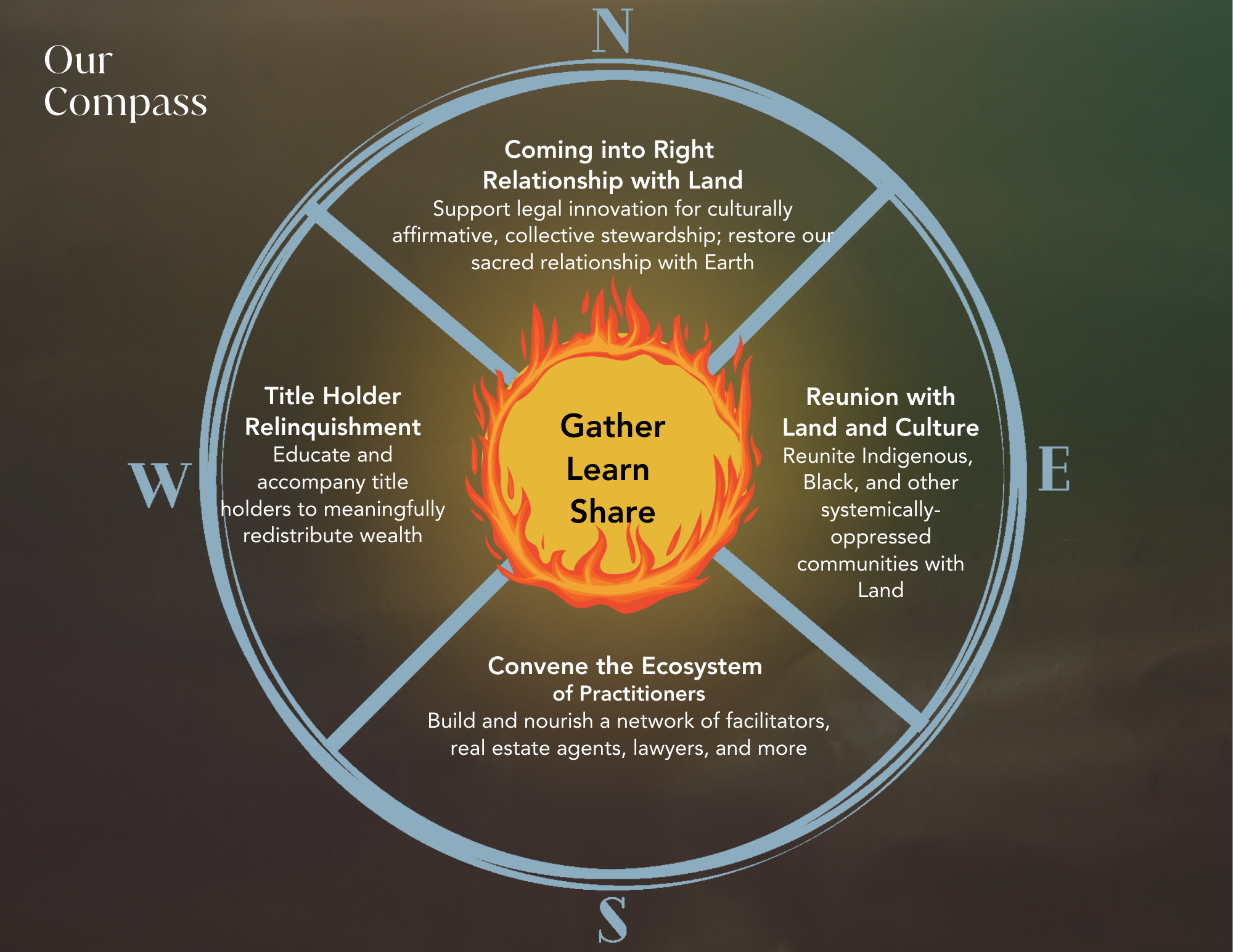 We want to locate, network and support the attorneys, real estate practitioners, organizers, consultants, fundraisers and cultural intermediaries who are acting as agents of change as they facilitate the journey from a dominant paradigm to a liberatory paradigm.