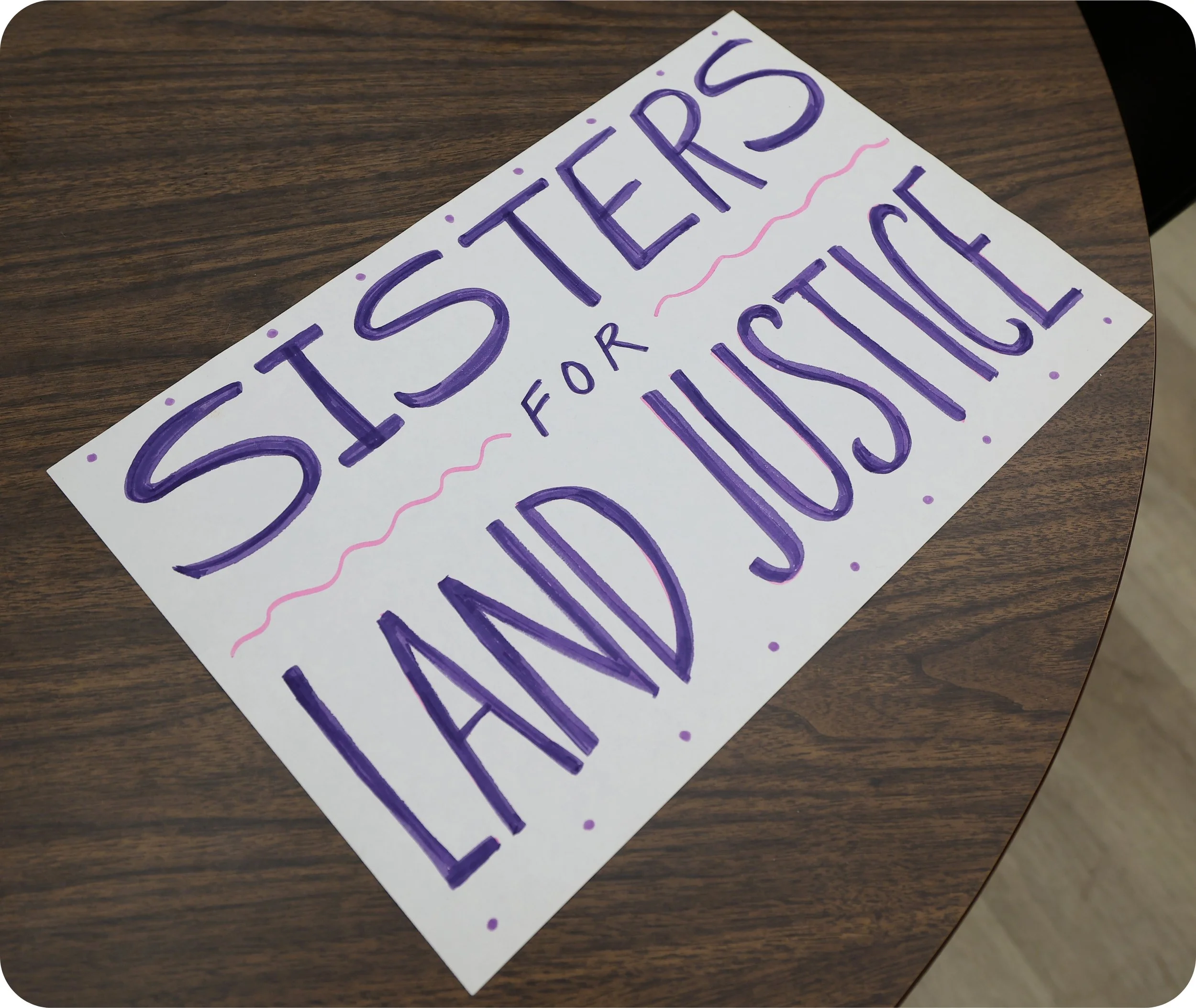 In October 2025, our sister organization Land Justice Futures celebrated a historic milestone when the Franciscan Sisters of Perpetual Adoration of Arbor Vitae, Wisconsin, transferred title of the Marywood Franciscan Spirituality Center to the Lac du Flambeau Band of Lake Superior Chippewa, the original Indigenous caretakers of the land. This marked the first known Catholic land return to a Tribal Nation in the United States as an act of repair for colonization and residential boarding schools, and the first rematriation carried out by women religious.